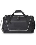600D polyester; Front zippered pocket; Bungee cords for extra storage; Large u-shaped opening to zippered main compartment; Tone on tone digital print accents provide added appeal; Shoe tunnel with breathable, ventilating mesh; Removable floor board for extra support; Side mesh pocket and side zippered pocket; Padded top grab handles; Removable, adjustable shoulder strap; 22"W x 12"H x 10"D;